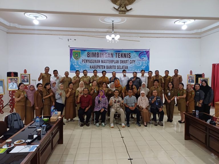 Diskominfo Barsel – BIMTEK Penyusunan Masterplan Smart City tahap kedua berlangsung selama 2 (dua) hari pada senin-selasa, 7-8 Agustus 2023 dihadiri oleh 65 peserta dari 31 OPD dan Kecamatan di Aula Bappeda Barito Selatan. Acara tersebut dibuka oleh Kabid Infosantik PAHMI MINTARAGA, S.Hut. Pendampingan Penyusunan Masterplan Smart city oleh tim Kementrian Kominfo FITRAH KAUSTAR, IKA KARTIKA, ABI dan NUGROHO sekaligus sebagai Pemateri. (umi)