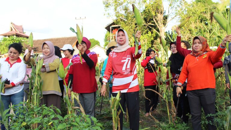 Diskominfo Barsel – Buntok – Pj. Bupati Barito Selatan (Barsel) Lisda Arriyana bersama Tim Penggerak Pemberdayaan Kesejahteraan Keluarga (TP-PKK) Kab. Barsel melakukan panen jagung dan sayur hidroponik hasil kebun PKK yang berlokasi di pekarangan belakang rumah jabatan (rujab) Bupati Barsel di Desa Sababilah, Sabtu (29/10/2022). Lisda Arriyana dalam wawancaranya menceritakan, bahwa saat pertama kali menempati rujab Bupati, ada beberapa bagian pekarangan yang masih kosong sehingga hal ini dimanfaatkan untuk dijadikan sebagai kebun PKK. Adapun maksud dan tujuannya adalah untuk memberikan contoh kepada PKK yang ada di kecamatan maupun desa agar dapat memanfaatkan lahan pekarangan yang kosong sehingga bisa menghasilkan sesuatu yang bersifat ekonomi untuk ketahanan pangan keluarga. Pj Bupati Barsel Lisda Arriyana panen sayur hidroponik di kebun TP PKK Barsel “Hal ini (memanfaatkan lahan pekarangan) juga menjadi salah satu solusi untuk mengendalikan inflasi dan dampak kenaikan BBM sehingga masyarakat wajib untuk memanfaatkan lahan pekarangan,” tegas Lisda. Sementara itu Ketua TP-PKK Kab. Barsel Yulia Yardi menjelaskan bahwa di kebun PKK ini juga terdapat kebun tanaman obat keluarga (toga) dan tanaman hidroponik. Pada saat rapat kerja PKK yang rencananya akan dilaksanakan pada akhir tahun, pemanfaatan lahan pekarangan ini akan dijadikan contoh untuk TP-PKK di kecamatan dan desa yang ada di Kab. Barsel. Pj. Bupati Barsel Lisda Arriyana didampingi ketua TP PKK Barsel foto bersama seusai melaksanakan panen perdana Turut hadir dalam kegiatan tersebut Kepala Dinas Ketahanan Pangan, Pertanian dan Perikanan Kab. Barsel Ida Safitri, Kepala Dinas Sosial Pemberdayaan Masyarakat dan Desa Kab. Barsel Selviriyatmi, Kepala Dinas Perdagangan, Koperasi, Usaha Kecil dan Menengah Kab. Barsel Swita Minarsih, Kepala Dinas Pendidikan Kab. Barsel Suaib dan seluruh pengurus TP-PKK Kab. Barsel. (Diskomifobarsel/Hw/Dym)